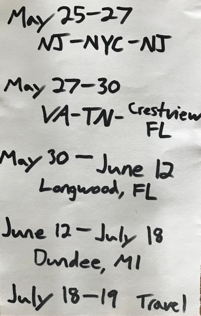 We departed the following morning on a three-day drive to the Florida Panhandle to sell our 2017 Fiesta to Lukus’ aunt. Her eldest grandson (Lukus’ first cousin once removed) had just graduated from high school and was in need of a fun fuel-efficient vehicle – we were happy for the good fortune! First day: passed through five states, night near Roanoke. Second day: continued driving through The Great Valley of the Appalachian Mountains, night near Chattanooga. Third day: continued south west to Montgomery and south to our destination in Crestview, FL. Had a great time at Aunt B’s house, as always!