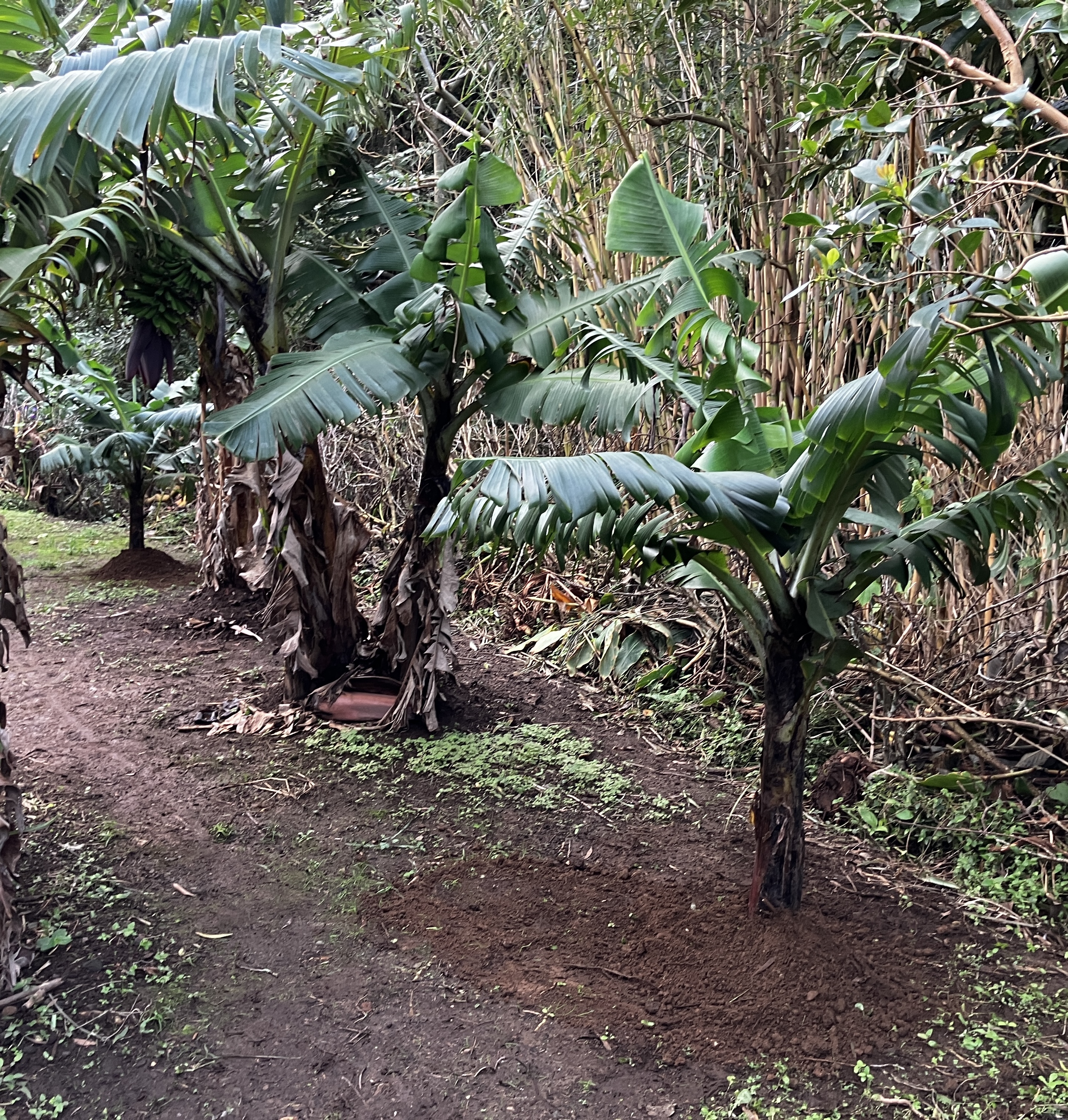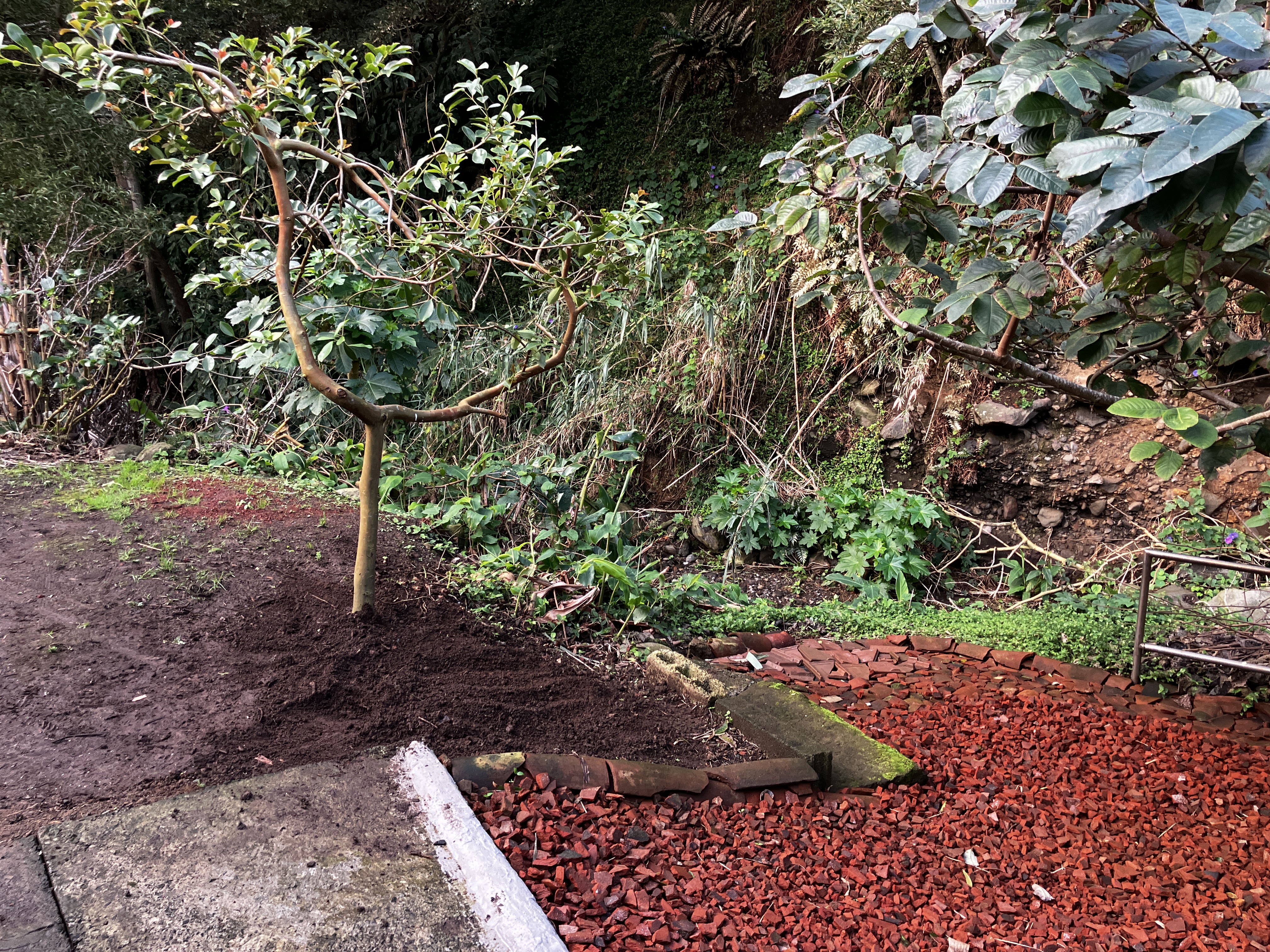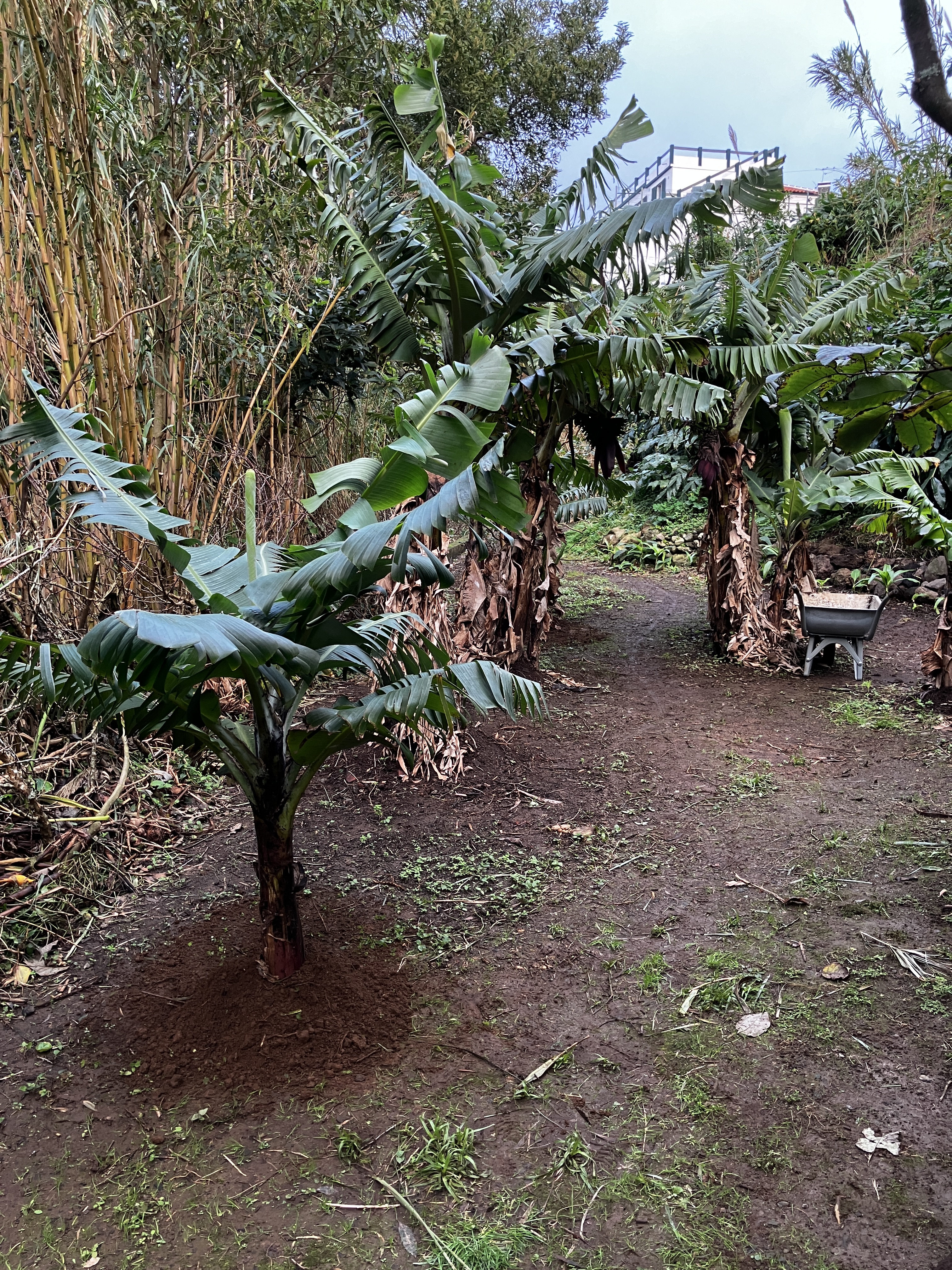 (Clockwise from upper-left:) We have continued with the garden terrace project – the new wall is coming along nicely and we are still working on moving and screening soil from behind the house. After much deliberation we decided to transplant the two banana trees growing near the BBQ to the back orchard with the other bananas – it already feels brighter and more open and will make a perfect location for some perennial herbs. Lastly, we have been treated to a bumper crop of oranges!
