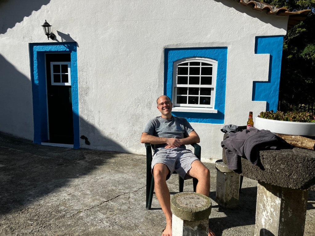 We will post again soon regarding our house-painting project (still a work in progress) but you can see above that we have painted the window frames, door frames, and corner a bright sky blue.