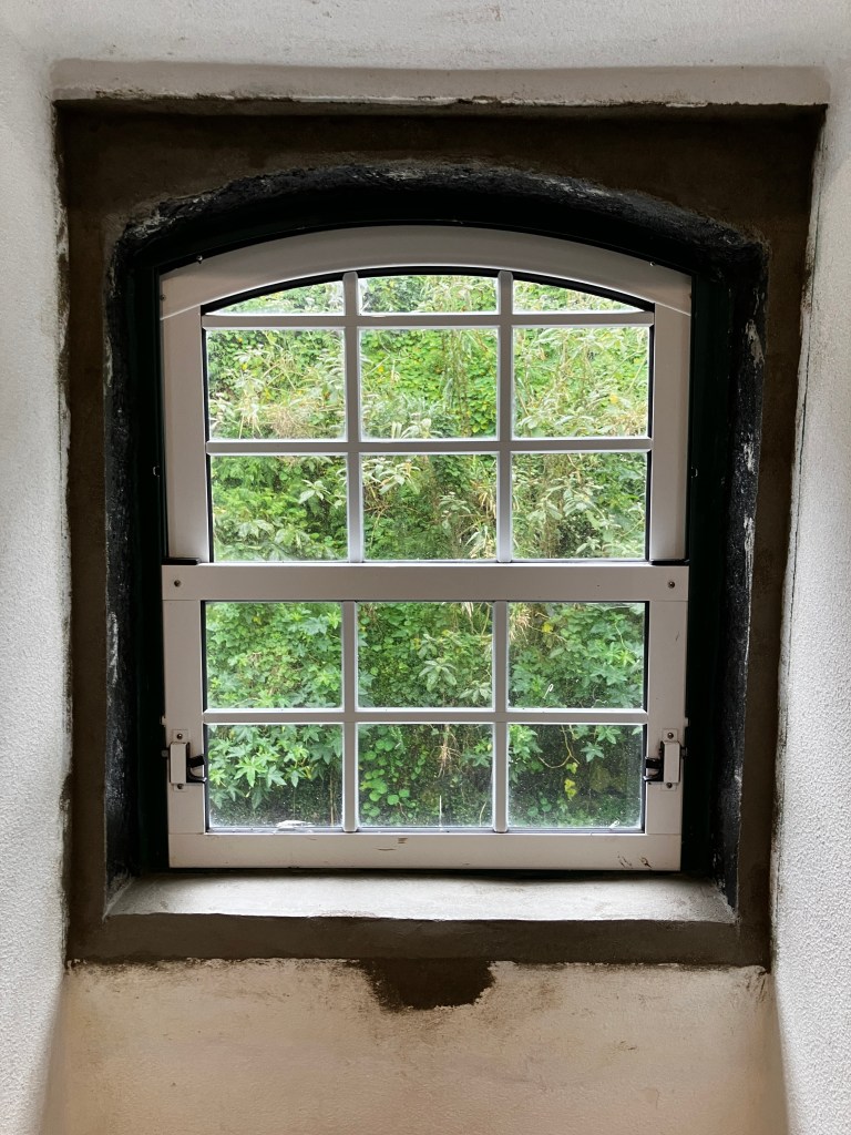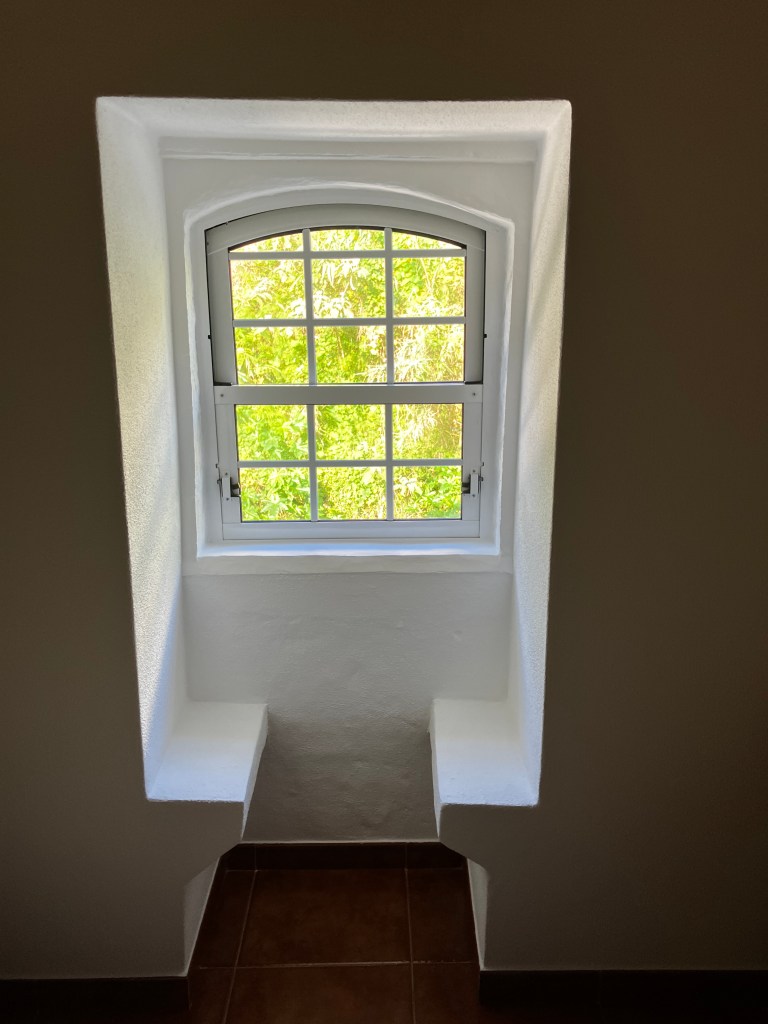 Middle row: our bedroom window before, after the wooden frame for shutters was removed and cemented over, freshly painted (along with the rest of the bedroom).