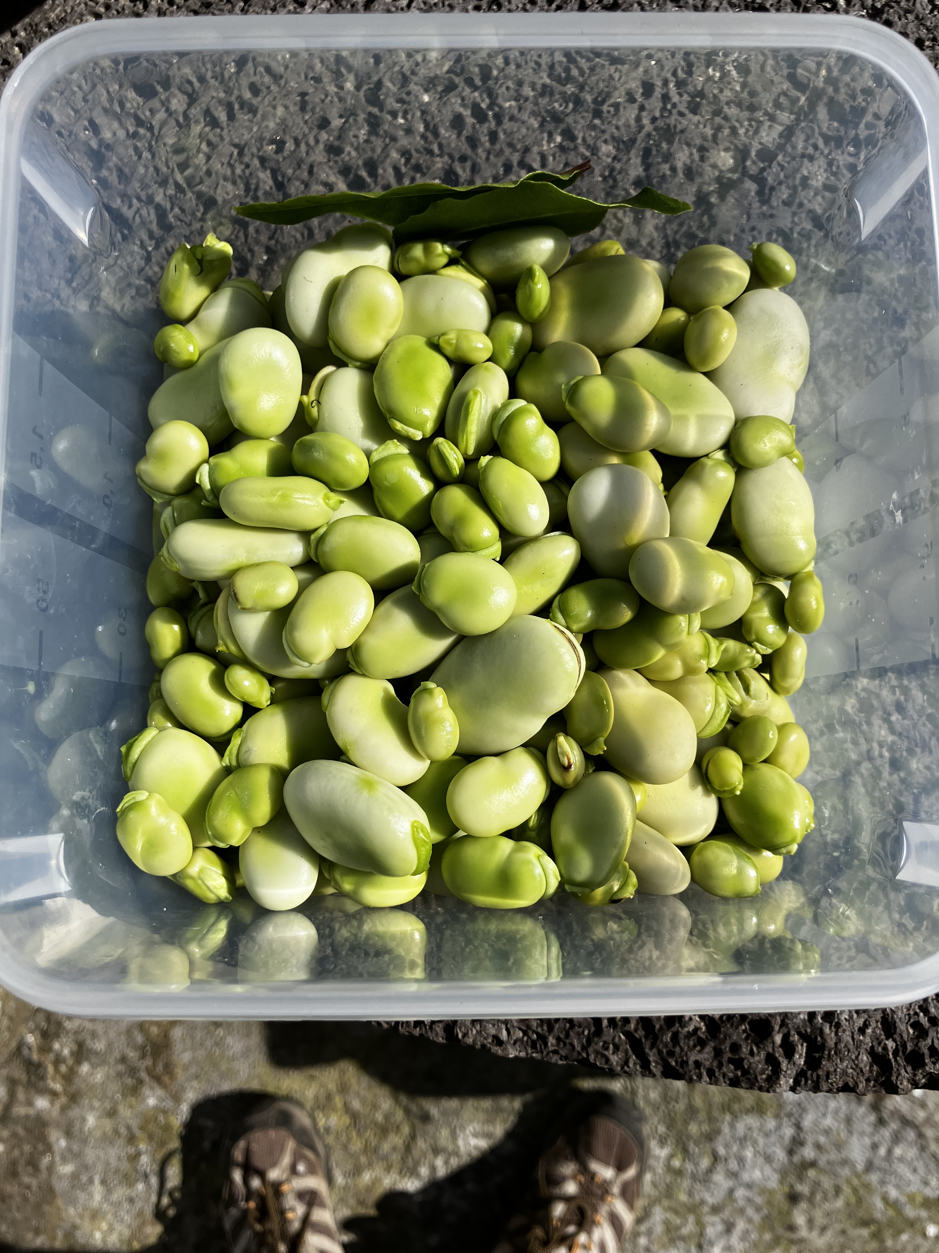 We have been blessed with some of the first produce from our terrace garden! We had a healthy harvest of fava beans (we made a delicious soup) followed by spinach (which was starting to ‘bolt’). Next was the first our potato plants to be harvested, yielding two beautiful yellow potatoes. Of course, we are still regularly harvesting the collard leaves and they are delicious as ever.