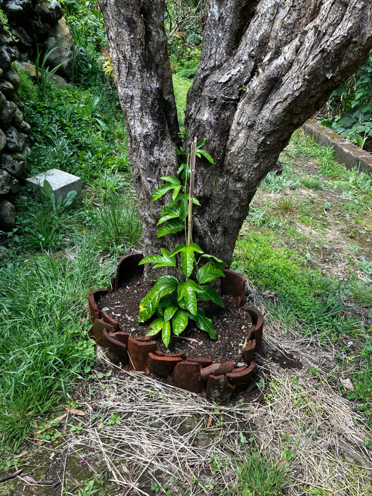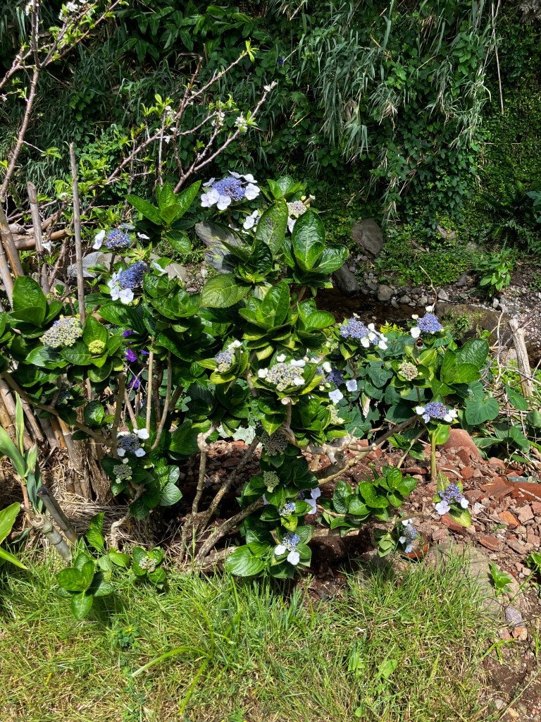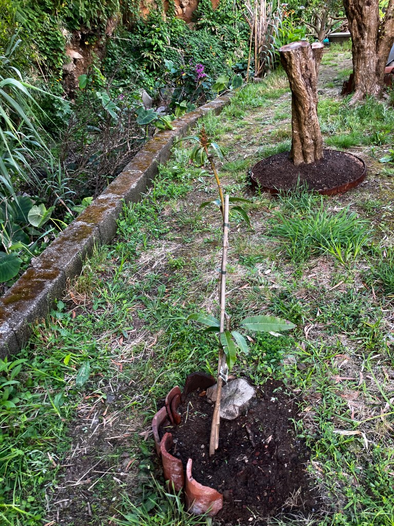 We planted a passionfruit vine at the base of the newly-trimmed cherry tree and are looking forward to it climbing and producing egg-shaped fruit. Behind that we created a small round garden bed and planted watermelon seeds (already sprouting well) and behind that we planted a mango tree! Our single hydrangea bush has really taken off after the trimming we gave it last summer – the flowers are just starting to open. And lastly, many thanks to Lukus’ mom and dad for the lovely wind chimes now hanging in the araçal tree above the herb garden (just mint and oregano thus far).
