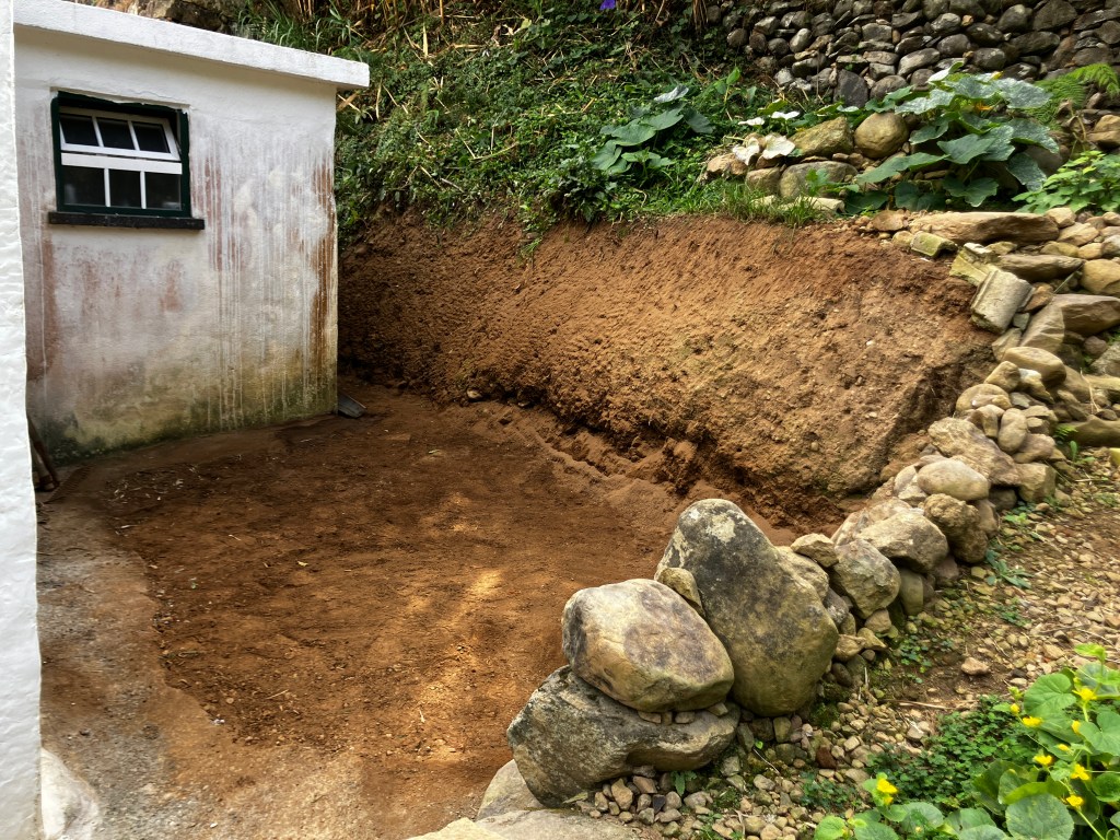 After much drilling and hammering, we finished the boulder project! Well, we removed enough that we were able to cover the remaining rock and considerable excavation hole with dirt. What a relief it is to be able to walk behind the house without stepping over a giant boulder.