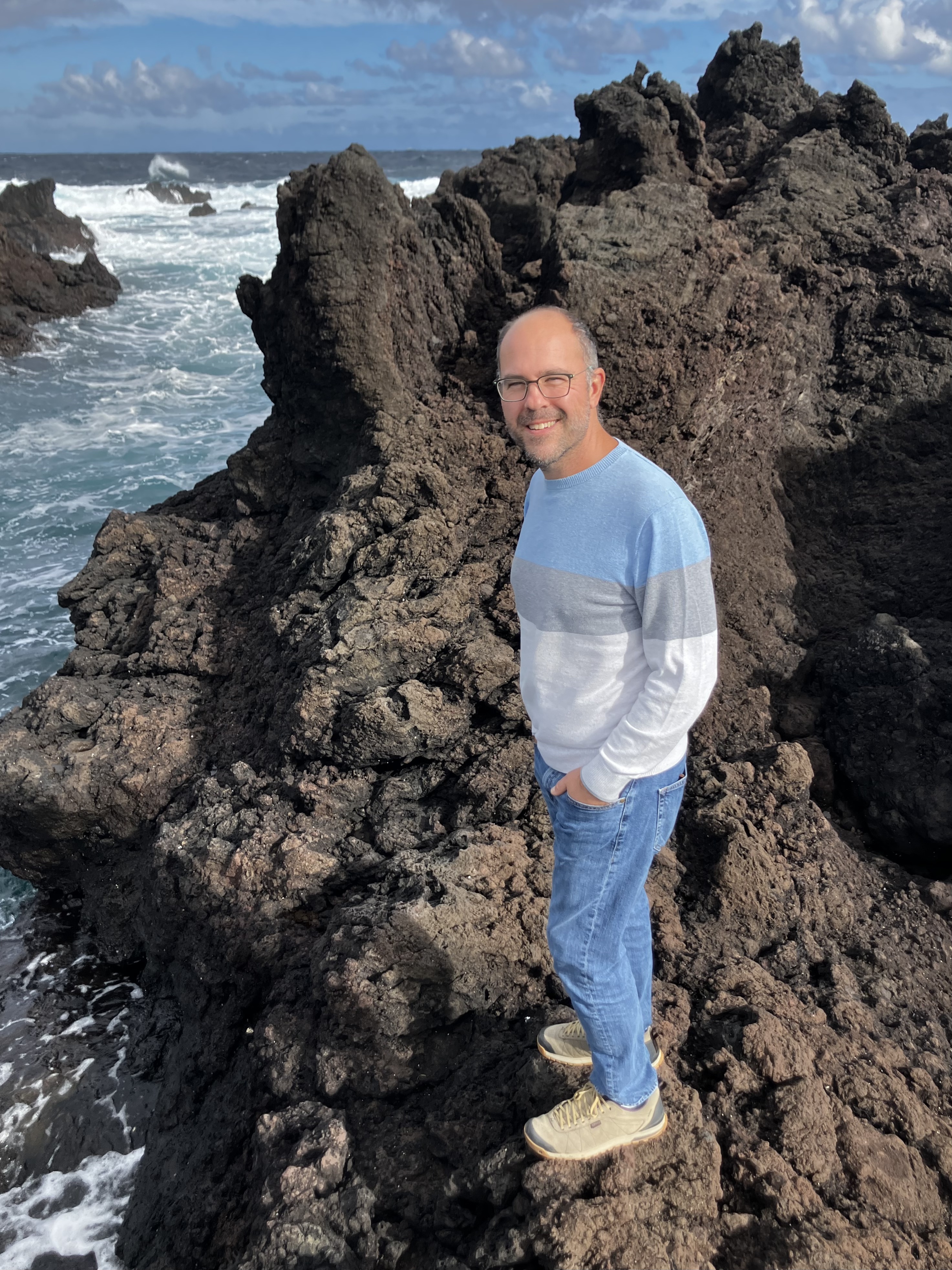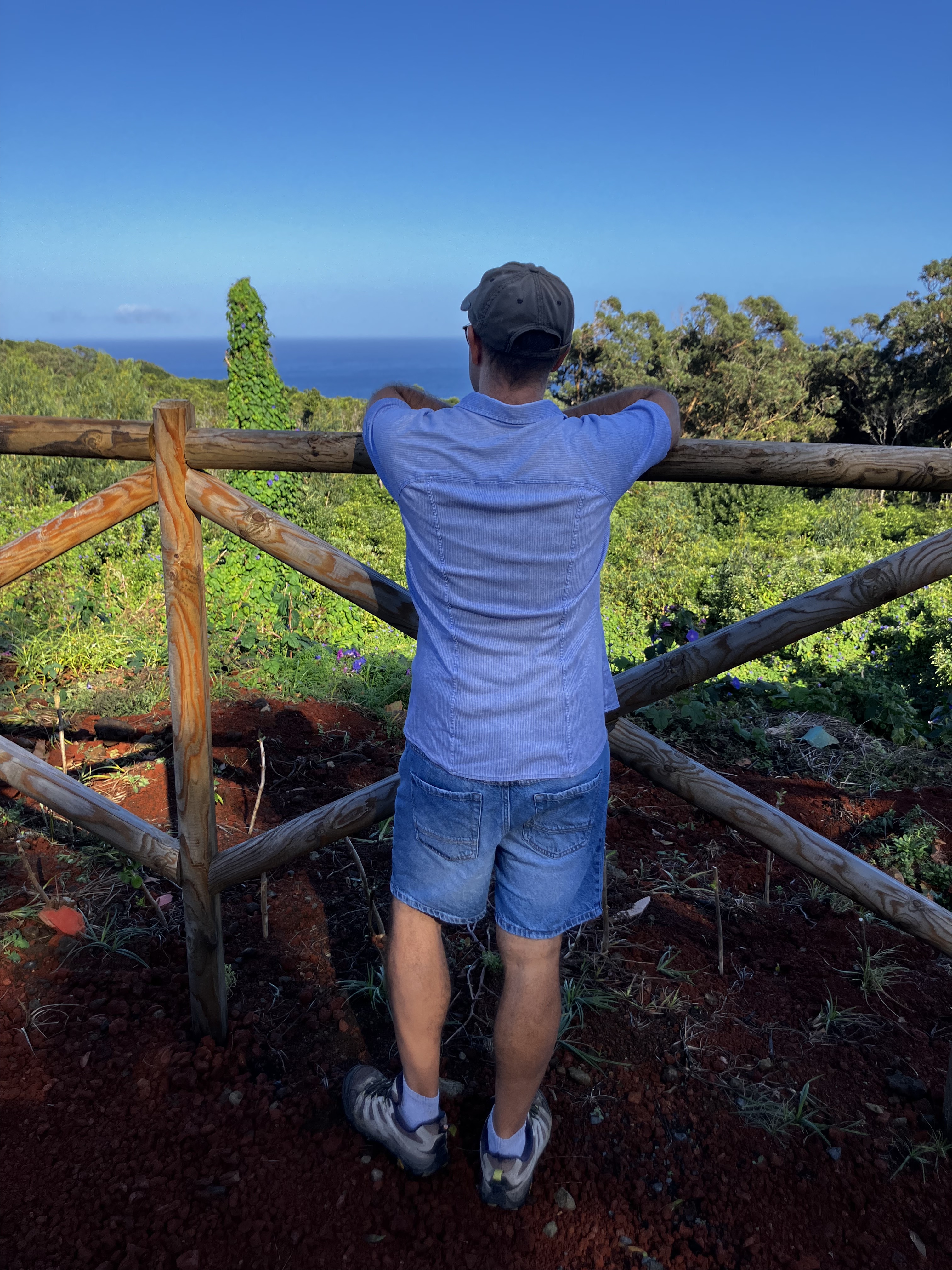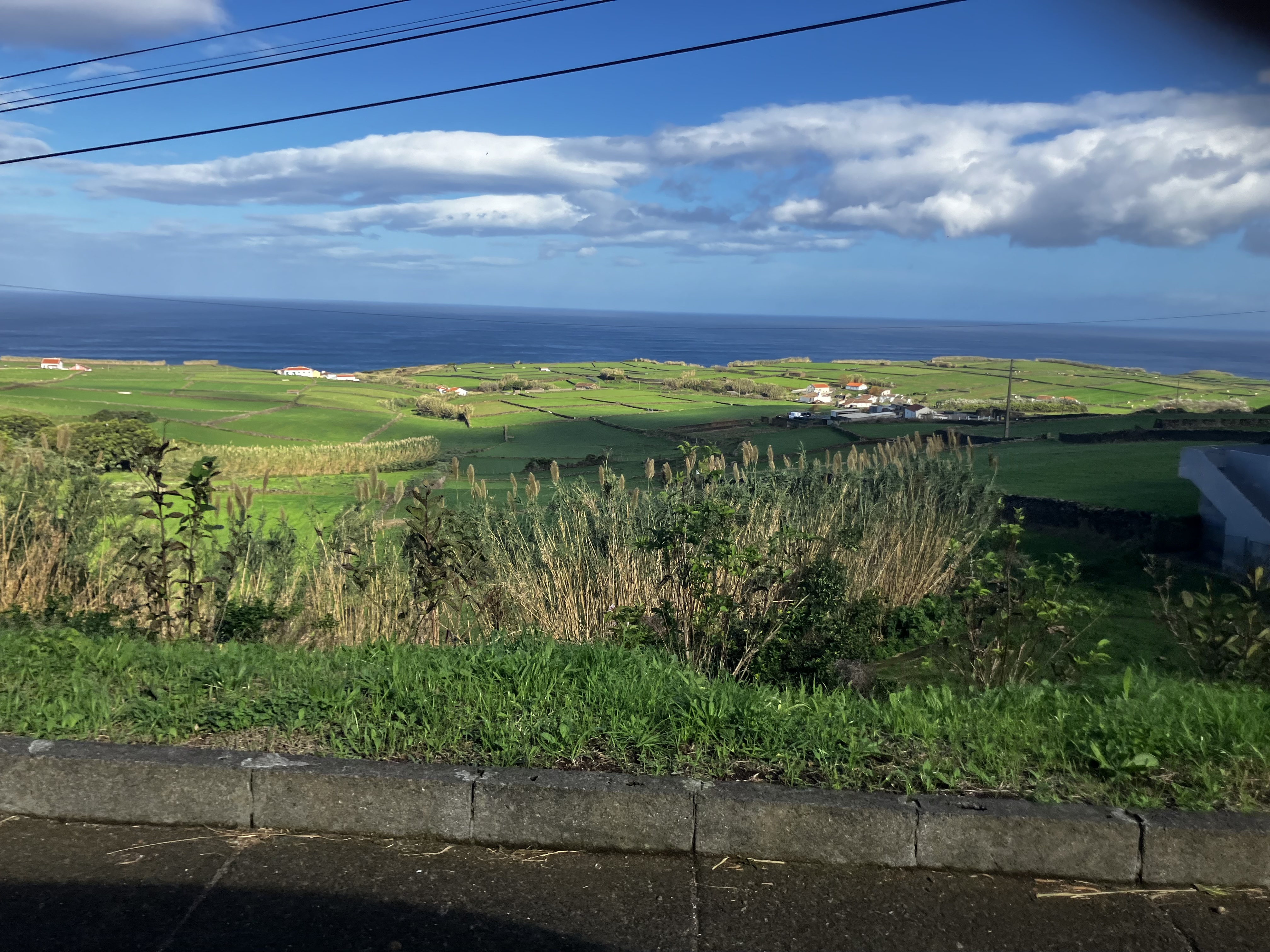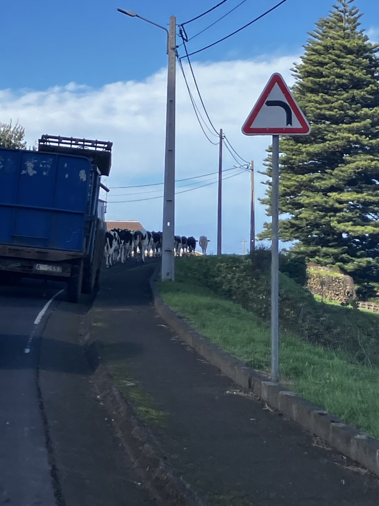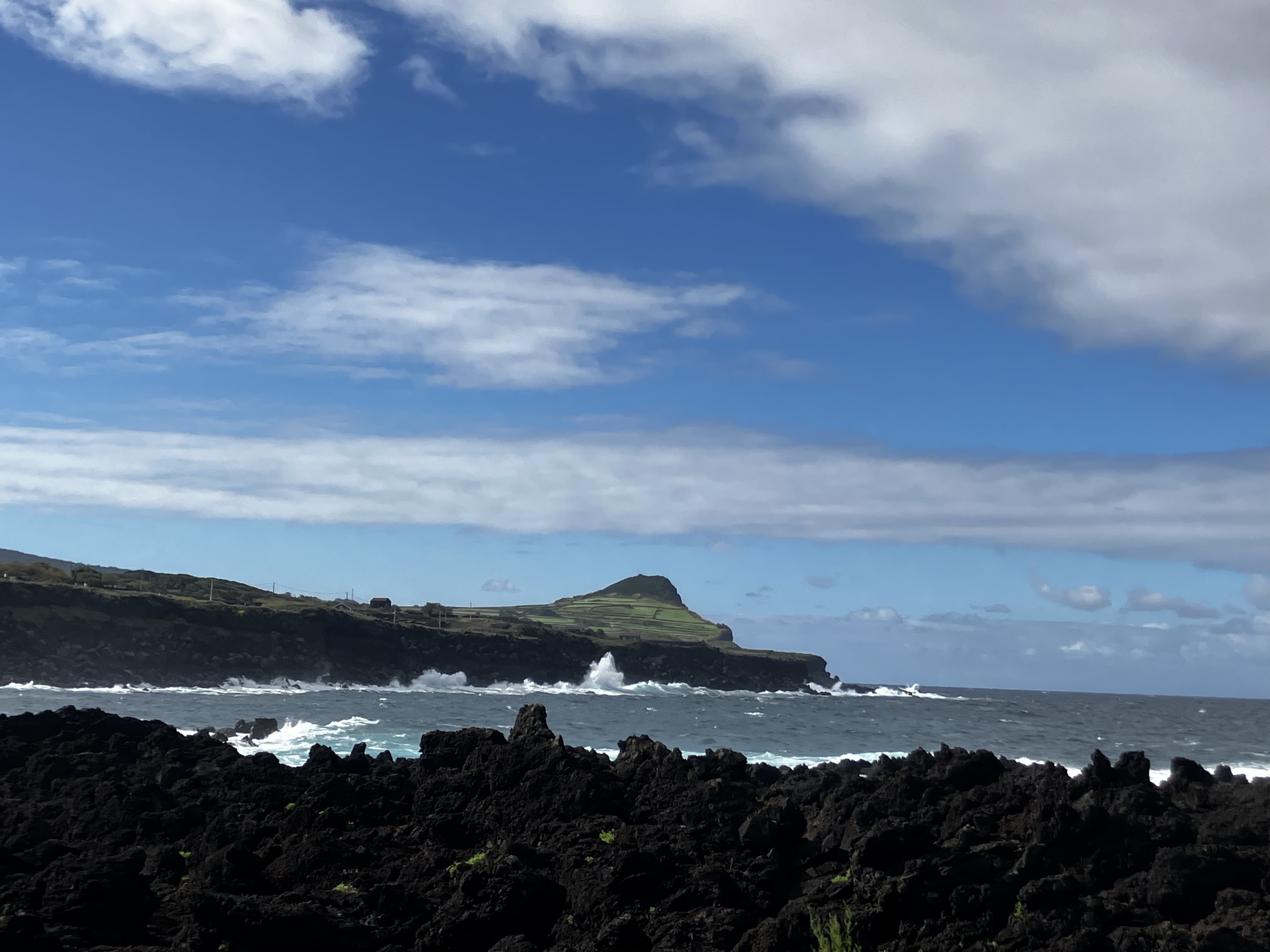 One particularly sunny day, Raymond and I took the opportunity to visit a forest park near our house that we had driven by dozens of times. The trail wasn’t very long, but it did reveal the tallest tree fern we had ever seen (note me standing next to it). Another day with especially big surf we visited the swimming area in nearby Biscoitos to see and hear the waves crashing on the dramatic black lava field. The last three photos are snapshots taken from the car – just some local scenery on the way to get groceries!