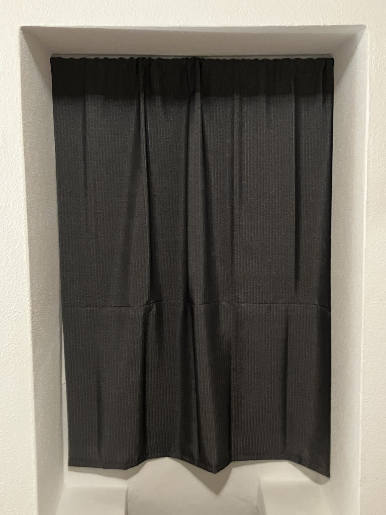 As is so often the case, our cloudy, misty side of the island is juxtaposed with the sunny, bright south side. On a recent trip to Angra we got a dose of sunshine and visited a fabric store we know to check out material for curtains. Back at home I sewed the fabric into three handsome curtains: one for the main bedroom (see below), one for the living room, and the remnants fit precisely in the guest bedroom window.