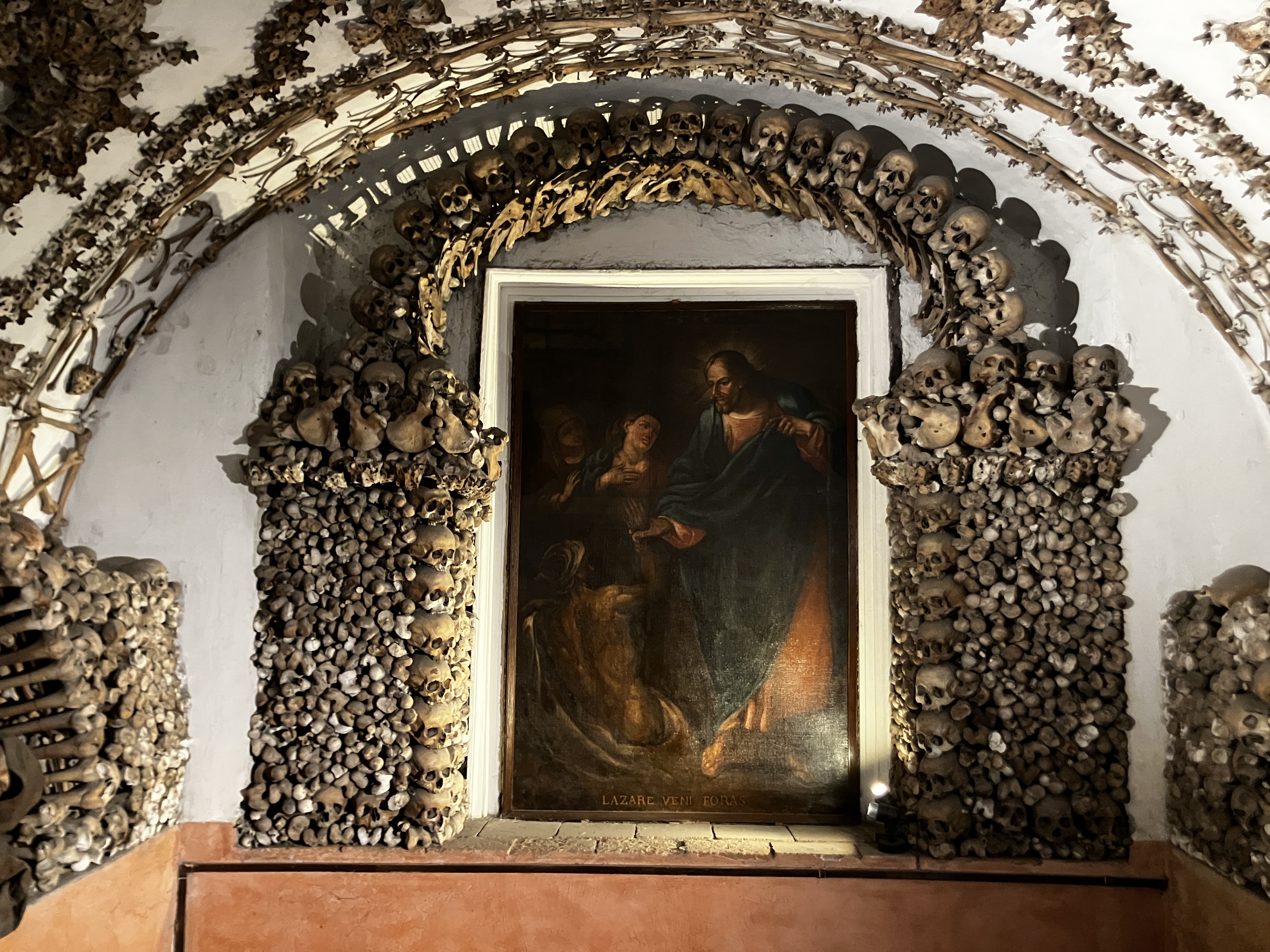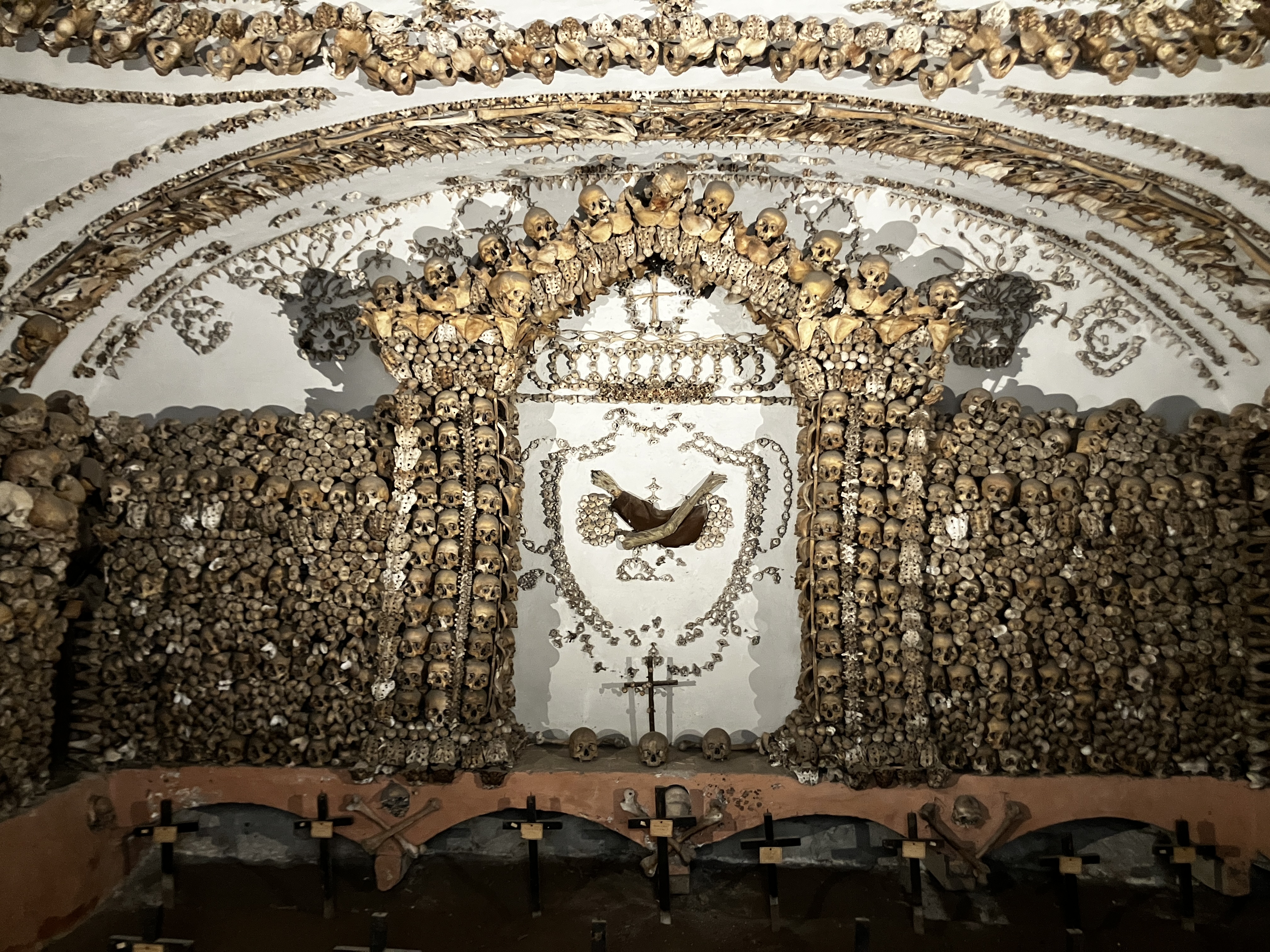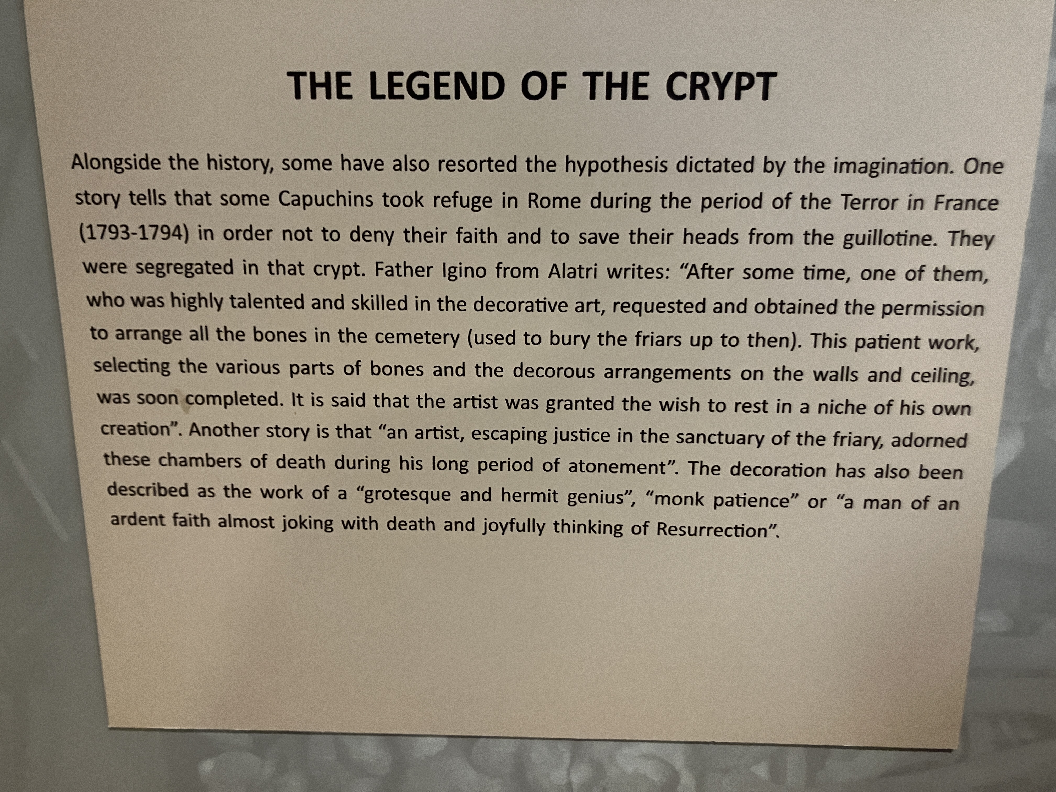 This was a dedicated ‘off’ day for us without any tours booked. Nonetheless, we thought we should see the famous Trevi Fountain so we boarded the subway and walked the last 1/2 mile or so. It was pretty, but completely swarming with people…rather than wait in the long line to walk down to the water level, we were content to take some photos and do some shopping at the interesting shops nearby. After a delicious lunch we walked to the nearby Convent of the Capuchin Monks to see its Franciscan museum (I liked the St. Francis in Prayer (1606) by Caravaggio). The real draw, however, was the macabre crypt filled with the bones of 3000 disinterred monks. Though eerie, the artistically arranged bones were also a peaceful reminder of the transience of life.