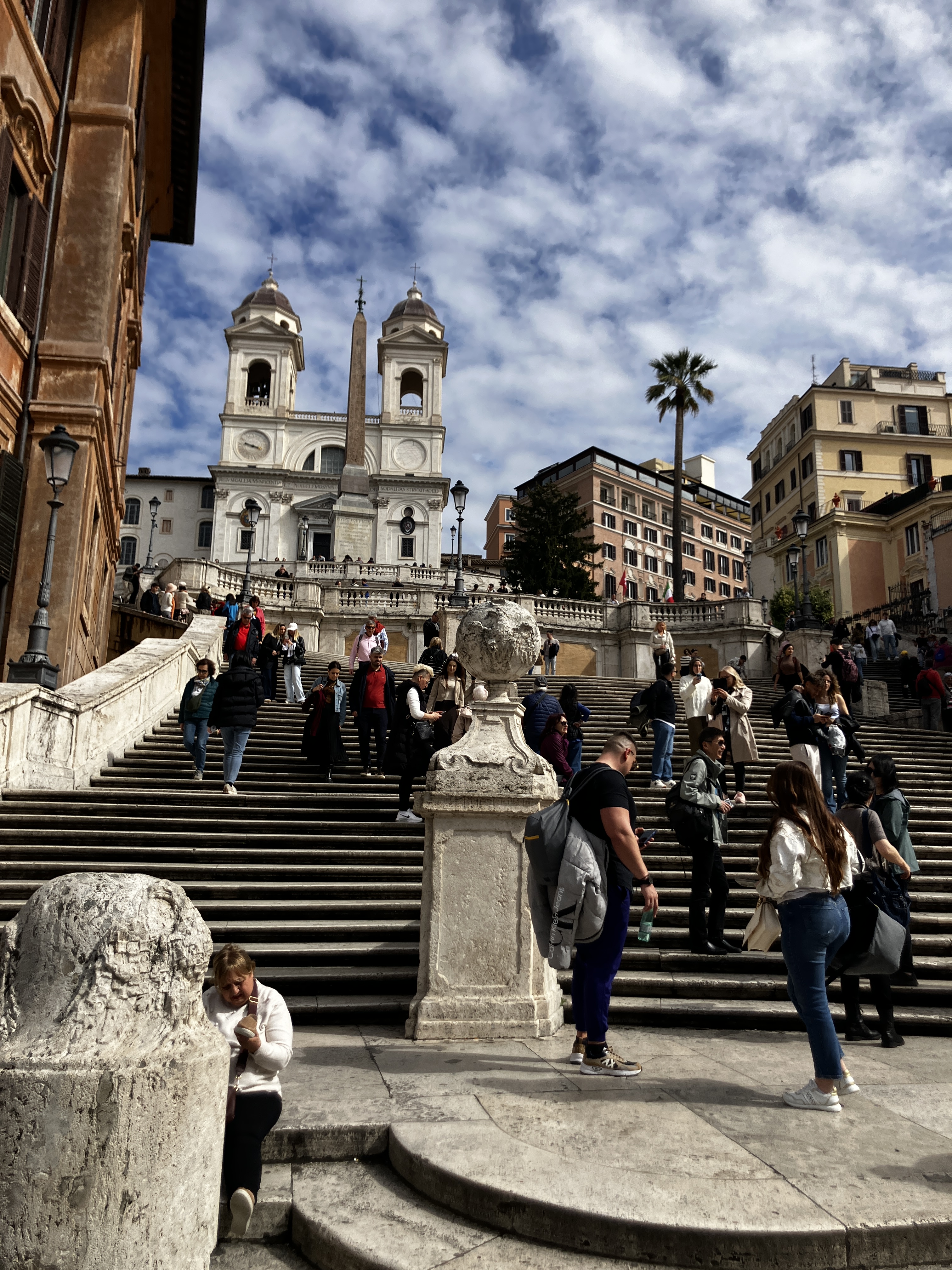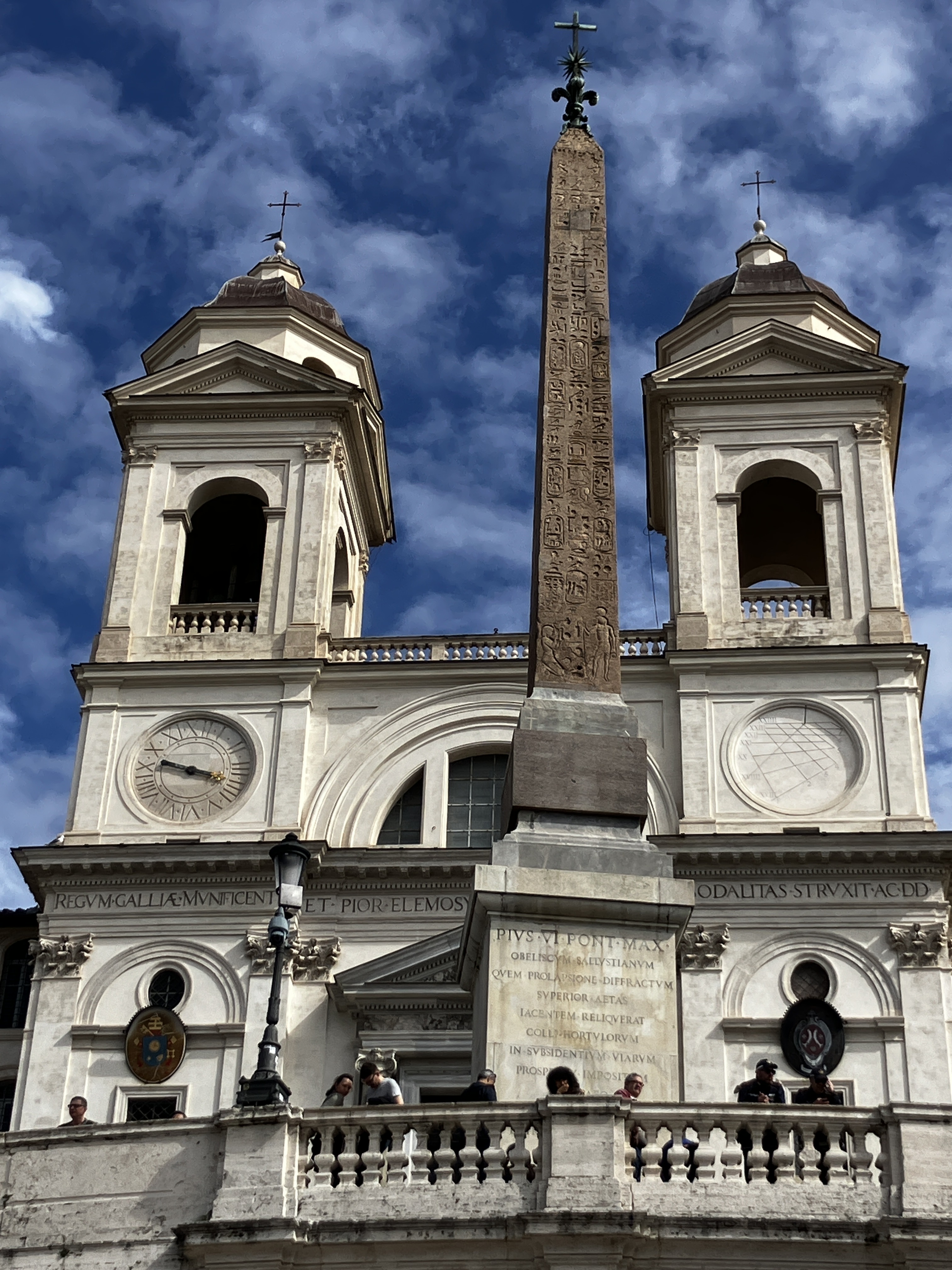 Later in the day Raymond and I took the subway to see the Flaminio Obelisk (ancient Egyptian, 1200 b.c.) and walked to the Spanish Steps. Climbing the 136 steps, we were treated to magnificent views of Rome (and St. Peter’s Basilica in the distance) as well as the Church of St. Thérèse at the top.