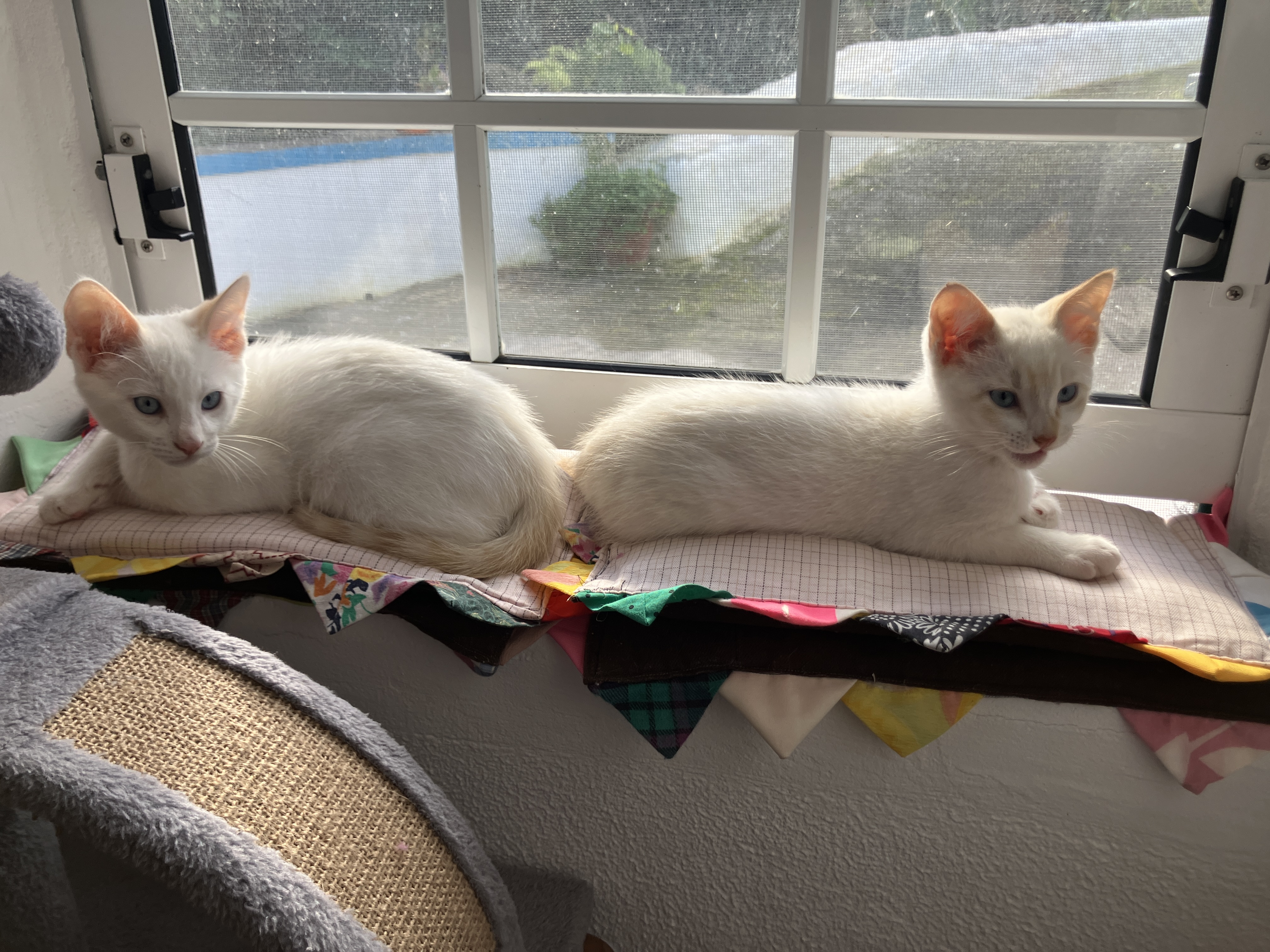Archimedes and Nicodemus are doing very well and are good boys most of the time. They have grown a lot in the two months since we adopted them and their personalities are definitely taking shape. Archie is cautious, cuddly, and obedient – Nicky is very curious, caring, and sensitive. They both love to play with toys, wrestle with each other, and have quiet lap time with Raymond and I.