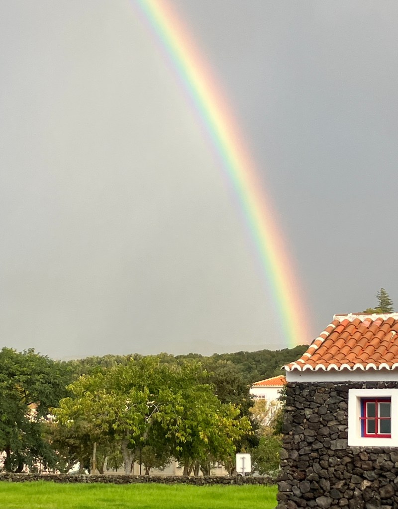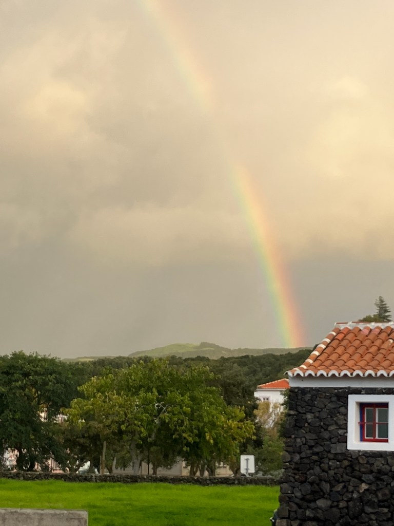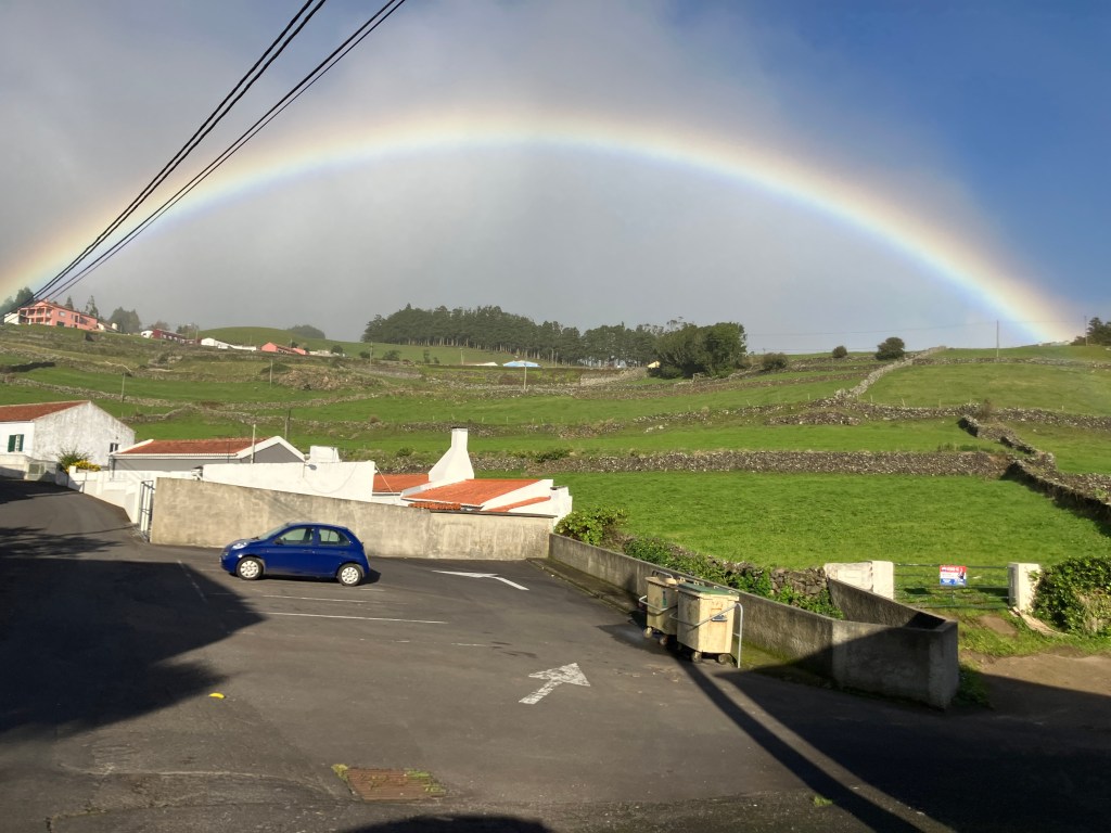 The rainy/misty weather of late Fall brings its share of rainbows. The top three photos are from our commute home just above the capital city of Angra. The bottom two photos are from the parking lot in Angra where we park the car during the work day (taken just before my appointment with immigration for the residency renewal – it seemed like a good omen!).