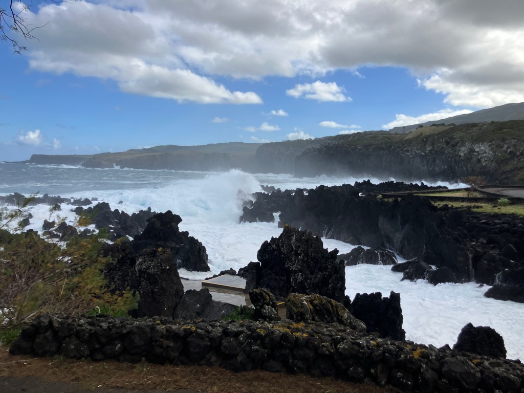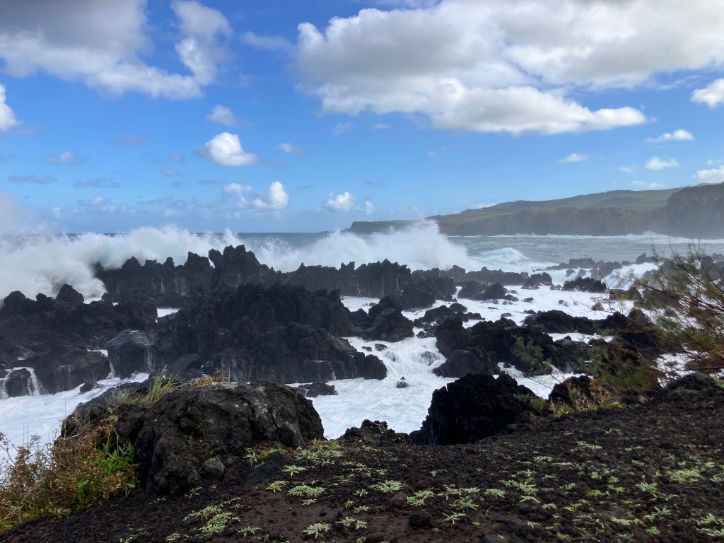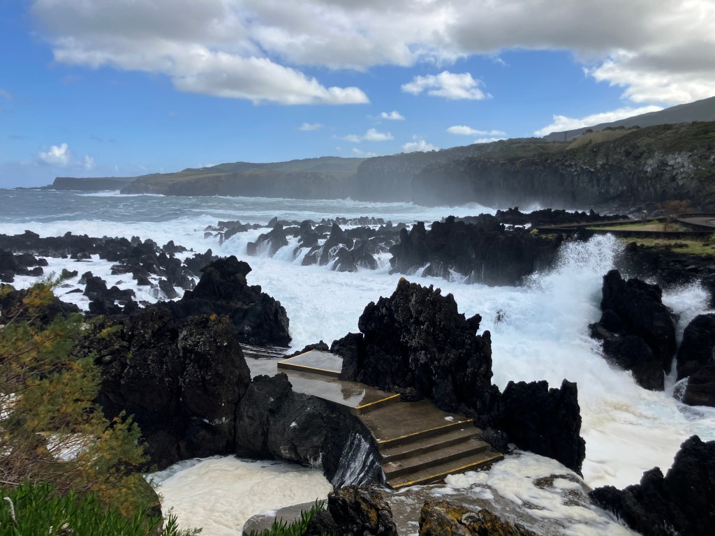 The winter winds from the north have returned, creating some dramatic scenery. The above photos were along the coast of Biscoitos looking towards Quatro Ribeiras. Needless to say, our glasses became quite salty watching such thunderous waves. A few times during the month we could hear them at night crashing into the cliffs near our house.