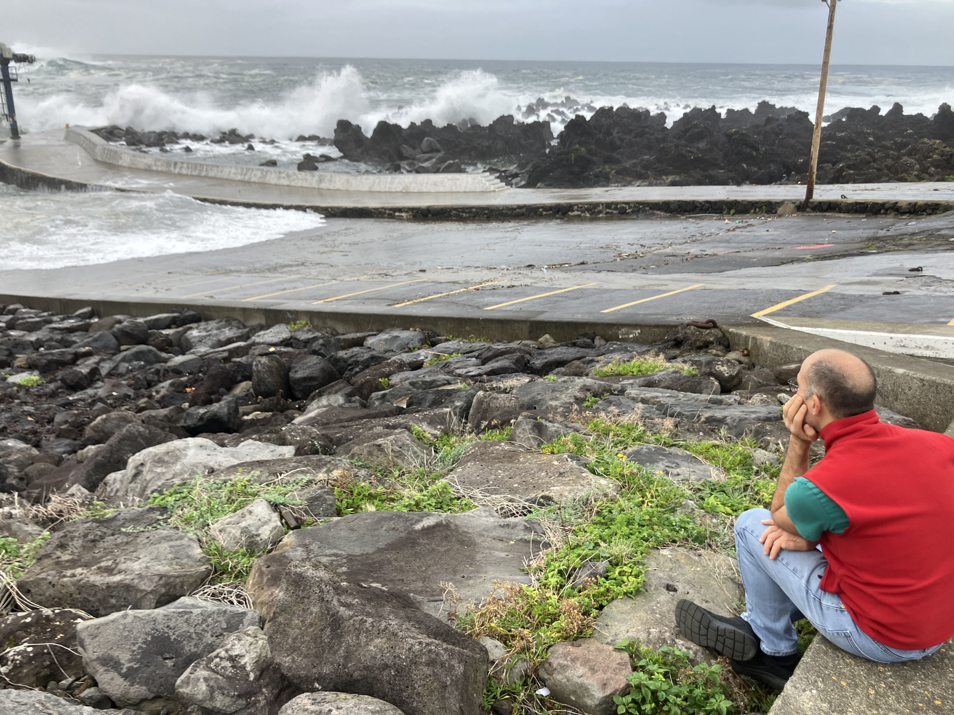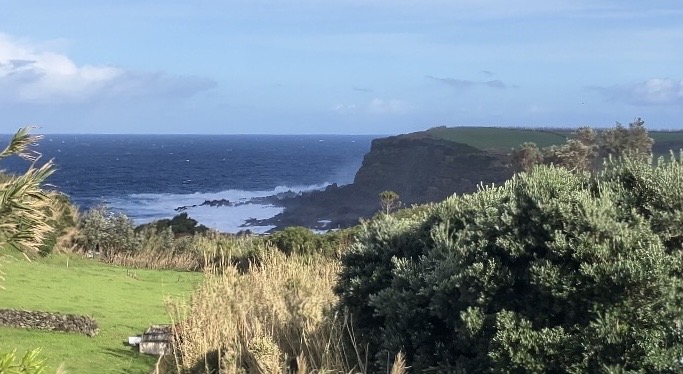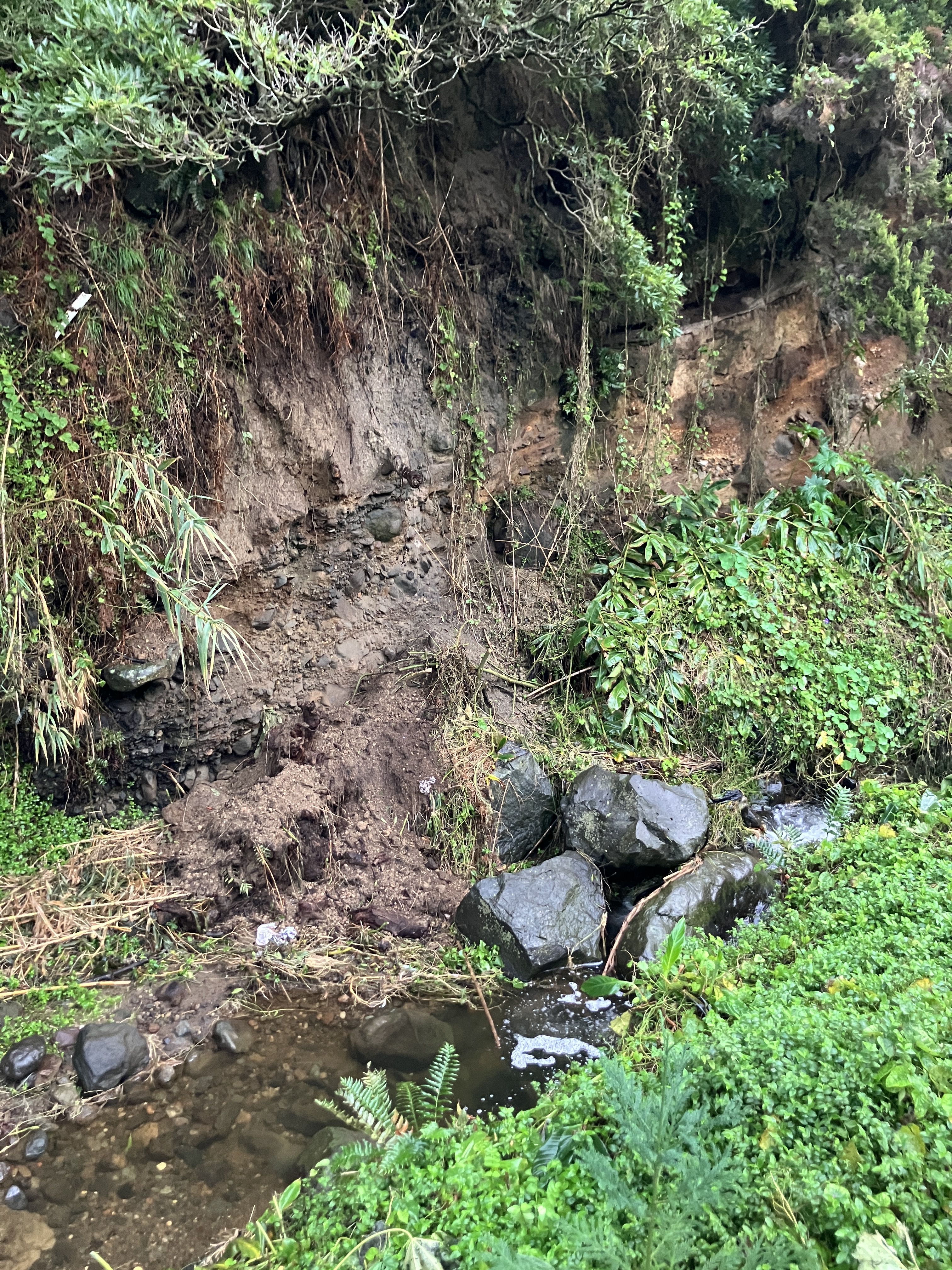 The island had a horrible wind storm in December with gusts of 65 mph. It made for some very dramatic waves at the port in neighboring Biscoitos. Unfortunately, it knocked over two big banana trees in our orchard, destroying their bunches of unripe bananas. Between the wind and rain, there was also some serious erosion on the other side of the stream.