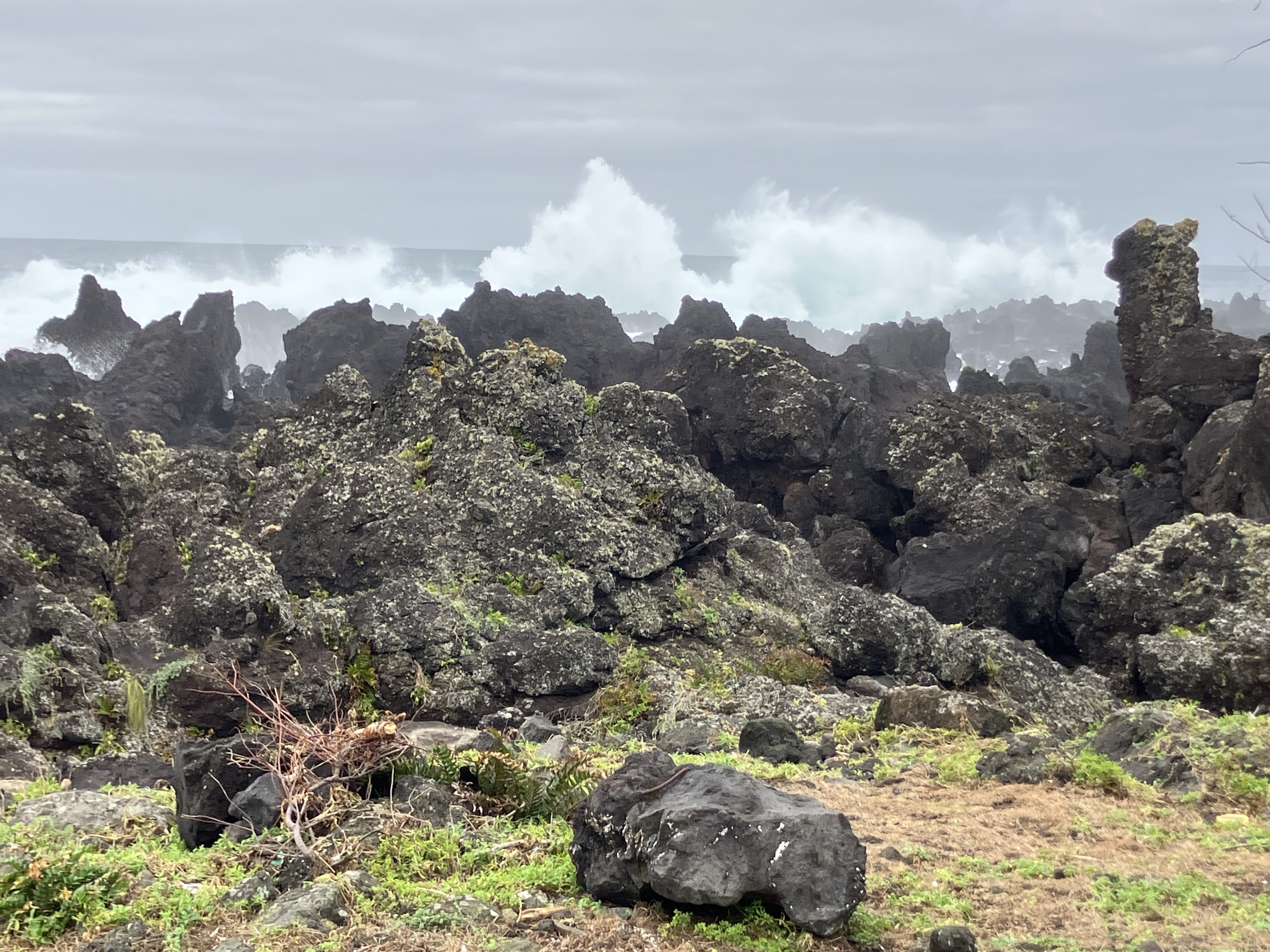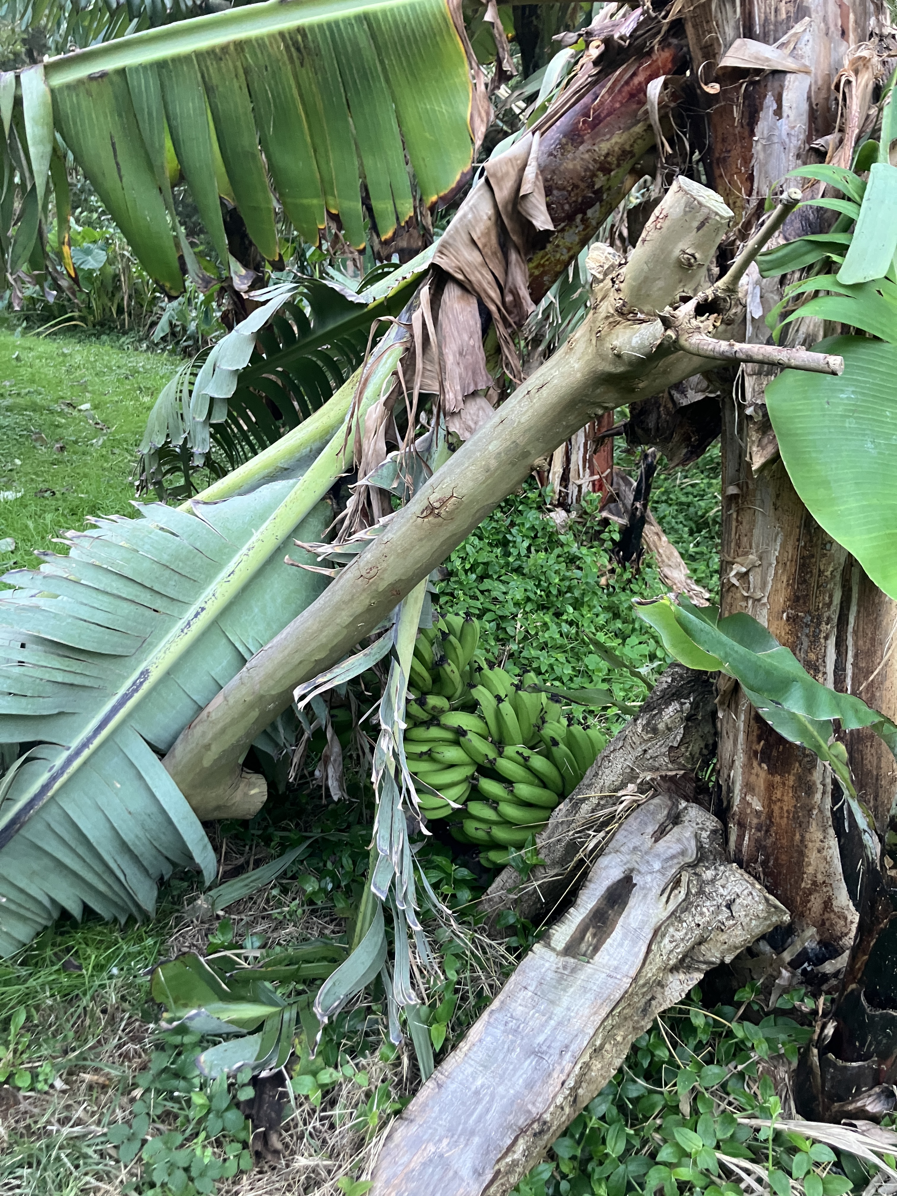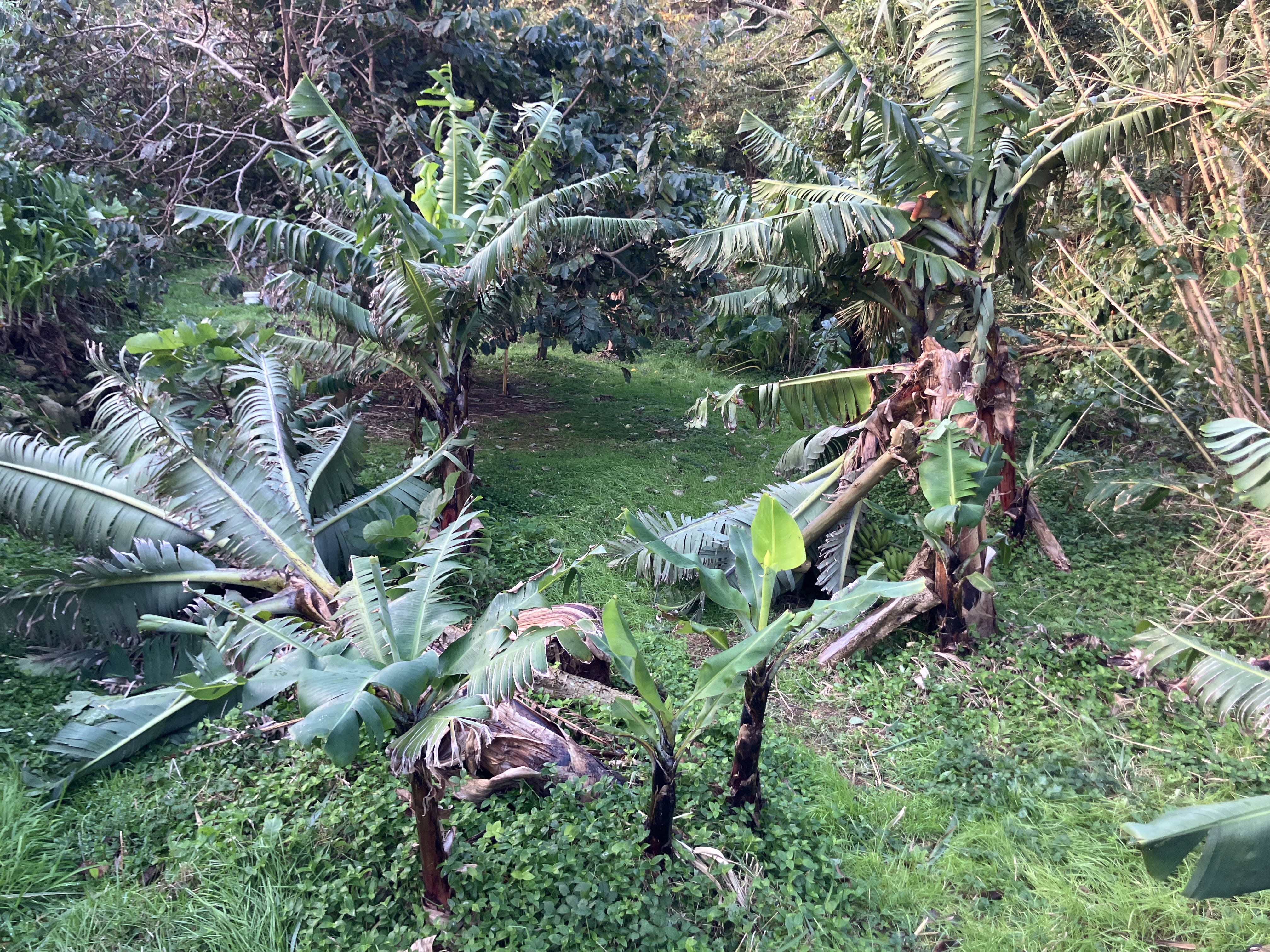 The island had a horrible wind storm in December with gusts of 65 mph. It made for some very dramatic waves at the port in neighboring Biscoitos. Unfortunately, it knocked over two big banana trees in our orchard, destroying their bunches of unripe bananas. Between the wind and rain, there was also some serious erosion on the other side of the stream.