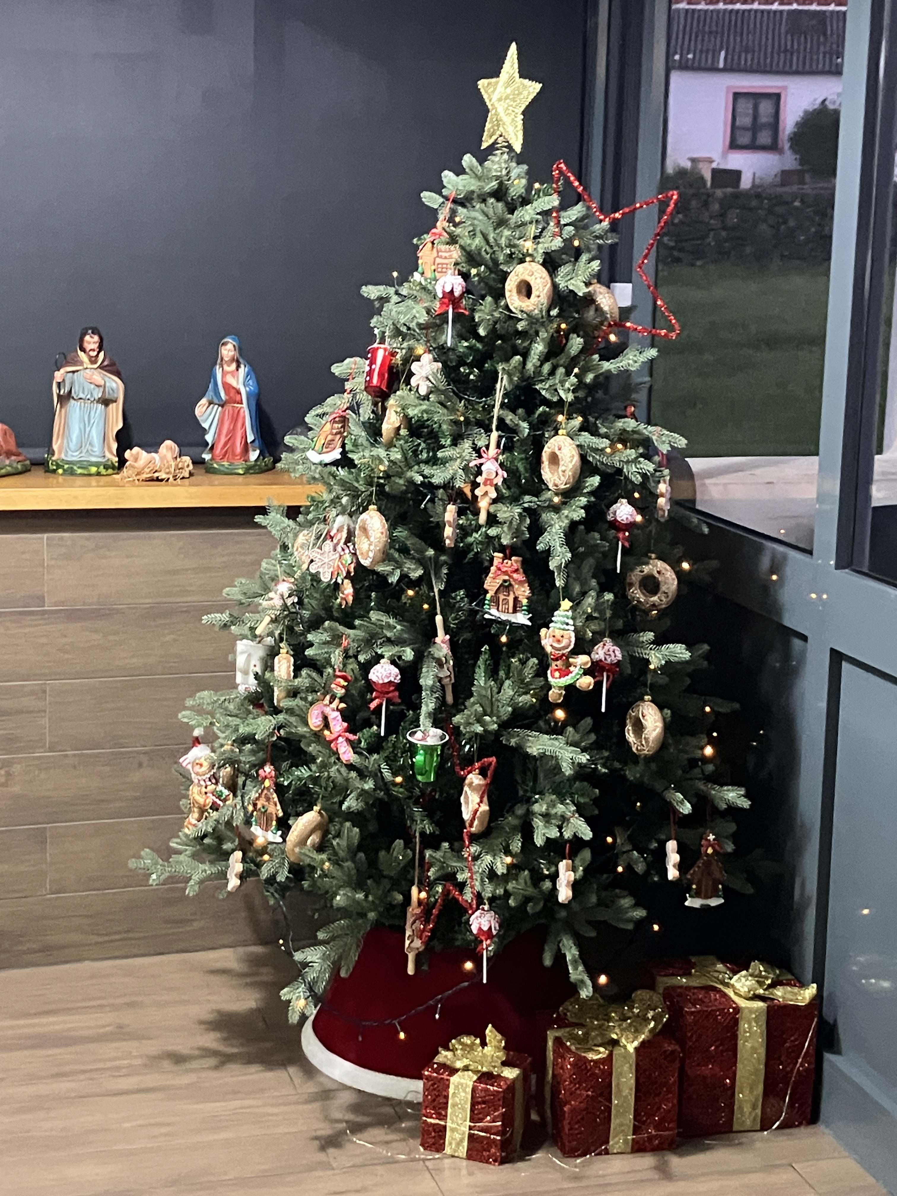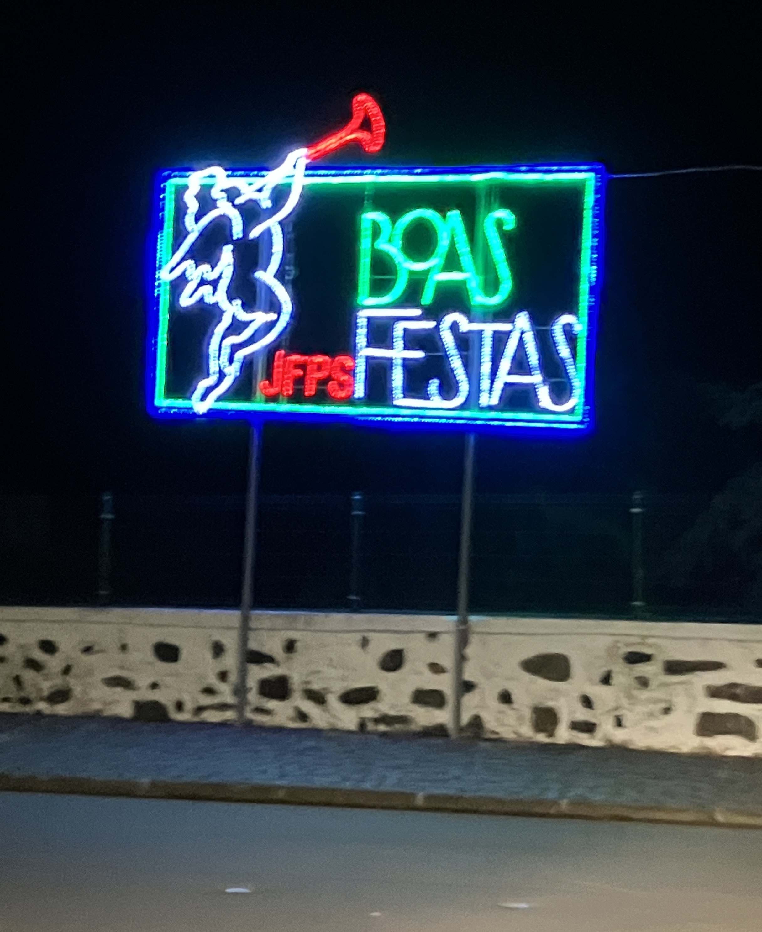 Though we do not have a Christmas tree, it’s nice to seem them around (above, at the local bakery and restaurant). We did, however, put up our stockings at home! The neon lights celebrating Happy Holidays were another festive reminder of the season, even if the sun and sea did not convey Christmas.