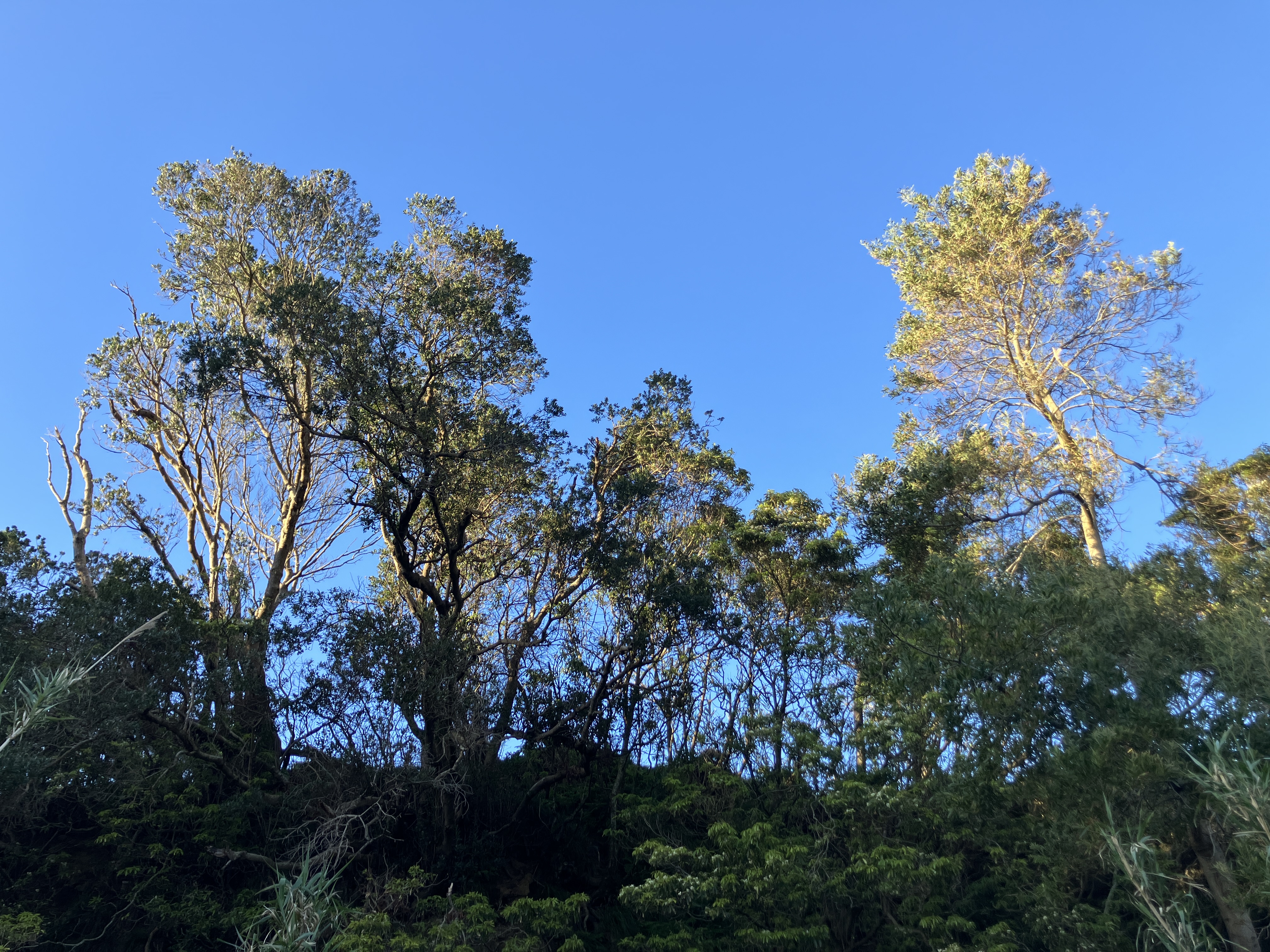Top row: the evening ‘golden hour’ on the trees above the stream