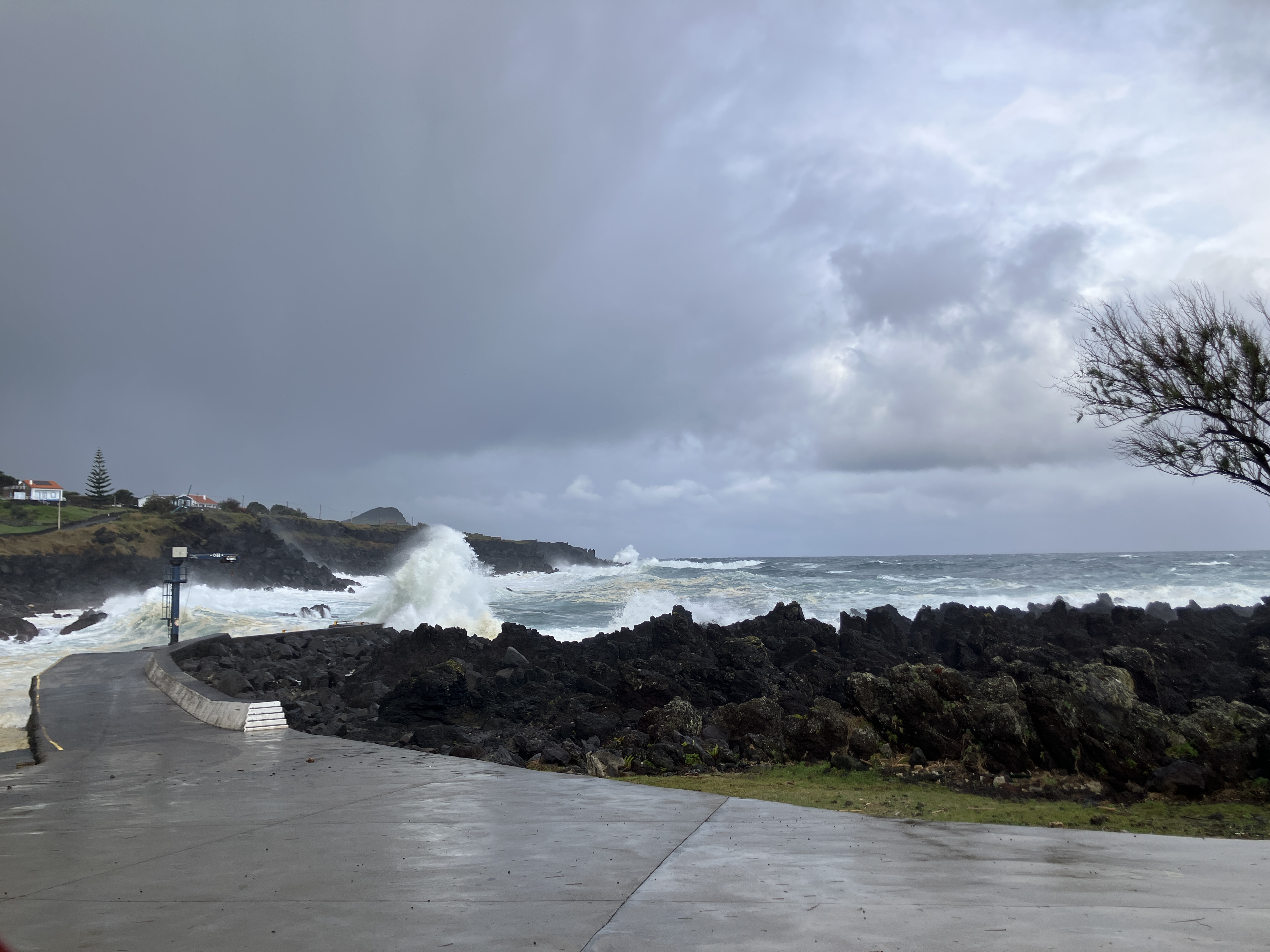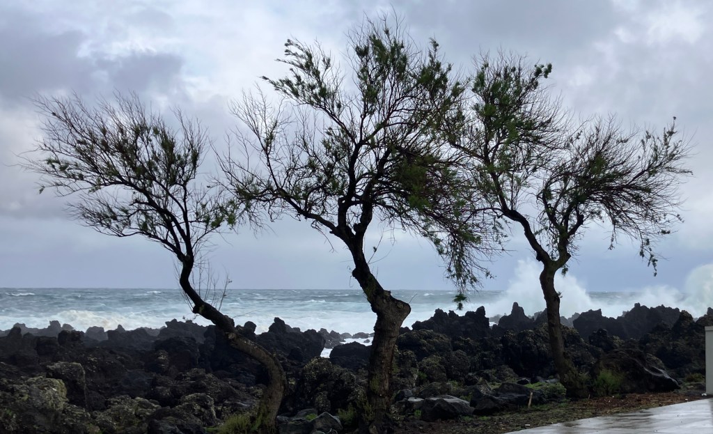 The calendar claims it’s Spring, but we have had some unseasonably cold weather the past month. For about a week, we had brisk north winds and temperatures down to about 43 degrees – factor in wind speeds of 50 mph and the windchill was below freezing! The above photo is from the port in Biscoitos on our drive home one particularly windy, wavy day. The fury of the sea really is a sight to behold…