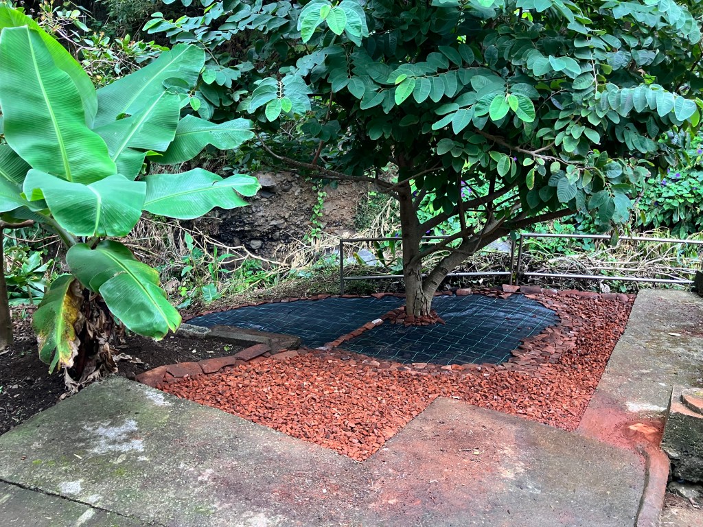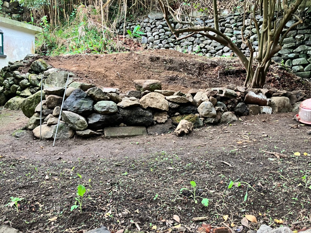 (Clockwise from upper-left:) We have continued with the garden terrace project – the new wall is coming along nicely and we are still working on moving and screening soil from behind the house. After much deliberation we decided to transplant the two banana trees growing near the BBQ to the back orchard with the other bananas – it already feels brighter and more open and will make a perfect location for some perennial herbs. Lastly, we have been treated to a bumper crop of oranges!